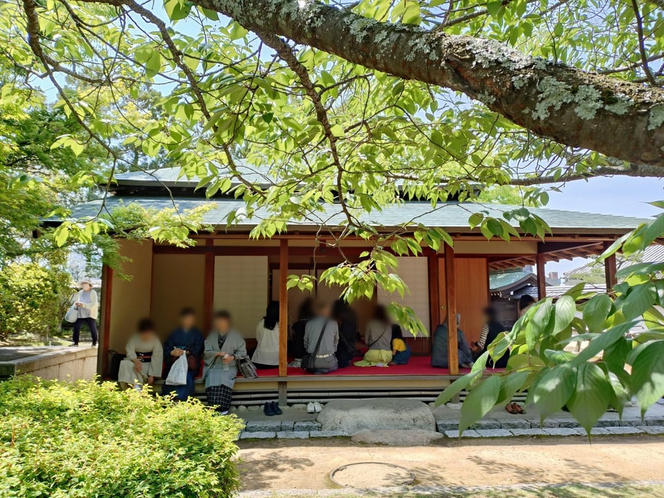 聚楽亭でお茶とお茶菓子を提供いたします。